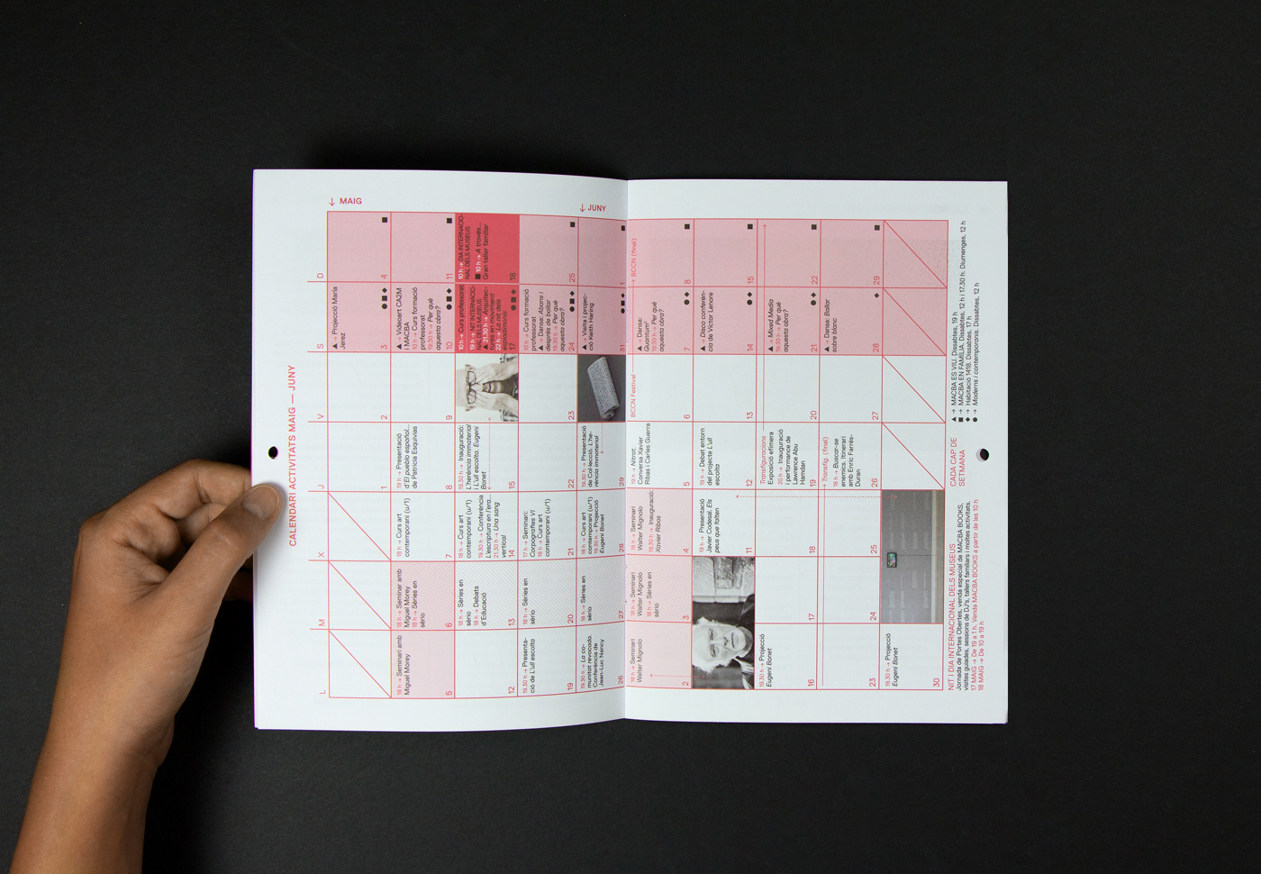 Disseny i maquetació de la programació d’activitats bimensuals del Museu d'Art Contemporani de Barcelona — MACBA.